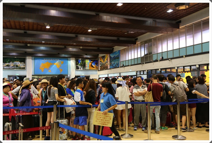 當大家還在大樓理排成長長的人龍等待上船的同時,管家已經在門口等我們,帶領我們前往通關,連行李都不用拿直接送到房間。