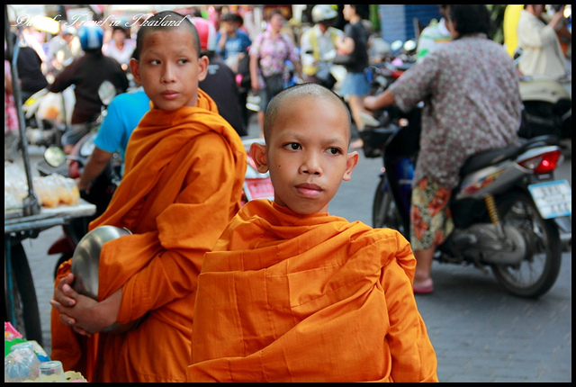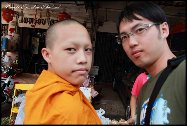 佛教盛行的泰國,僧侶化緣的景象也隨處可見,因此我也不免俗地買些給僧侶的食物,讓他們替我祈福,不過祈福對我來說只是次要目的,目的是跟僧侶聊天感受那過程而已,(PS.當年的我怎麼這麼胖呀XD), |