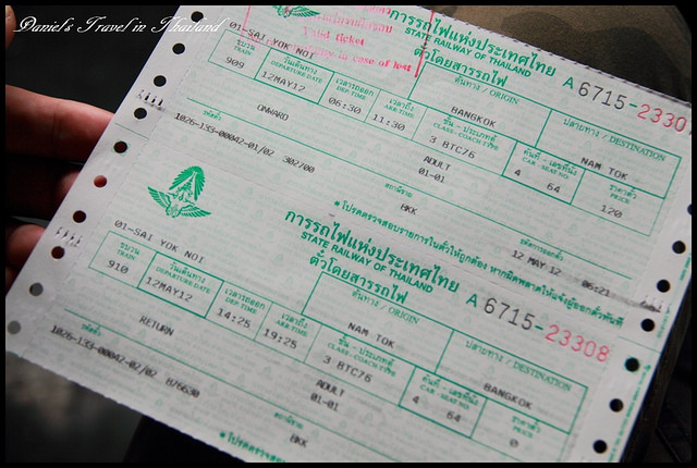 觀光列車的票價只要120B,這價格真是破天荒的便宜,因為死亡鐵路是很熱門的景點,所以光是從北碧到南多這段路程不管搭的時間多長單程就要價100B,而觀光列車從曼谷到南多再折回只要120,真是超便宜的票價,只是從曼谷出發的火車06:30出發,因此要搭成的話要非常早起,而且開往這段的列車是3等列車,列車上並沒有冷氣只有電風扇,再加上人多,所以天氣熱時會比較悶熱些,想要搭乘的人要有心理準備, |