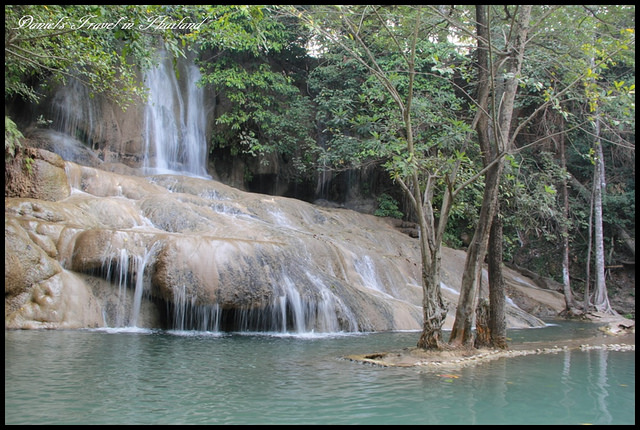 然而今年初小勇學妹來到北碧探險時剛好有經過這瀑布,因此順道來此探訪,冬天的瀑布因為天氣很冷,因此沒甚麼人下去游泳,但因為雨季剛過,因此瀑布水量不少,而池水水藍色的色澤也造成了眼前優美的景緻,冬天的瀑布景緻比起夏天美多了, |