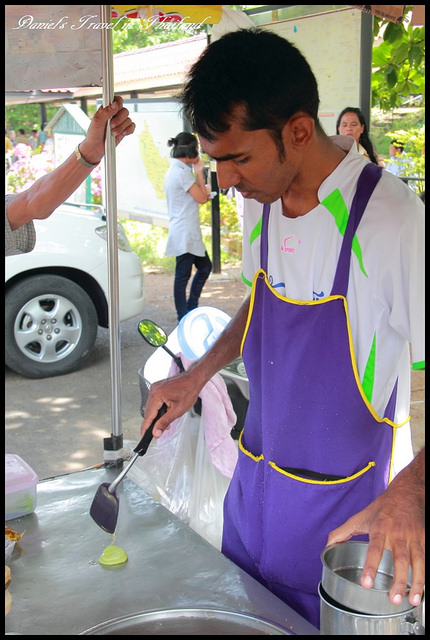 短暫的造訪瀑布之後,回到南多車站,在車站買了一份印度人所做的香蕉煎餅,這香蕉煎餅做法跟一般的香蕉煎餅差不多,只是特色在於除了容器是用椰子殼外,餅皮本身應該是加了香蘭汁做成,但味道比較沒那麼濃烈,而煎餅上還多了椰子肉,因此口感吃起來非常多變,也是第一次嘗試到這麼獨特的香蕉煎餅,如果來到南多車站有看到這攤可以嘗試看看, |