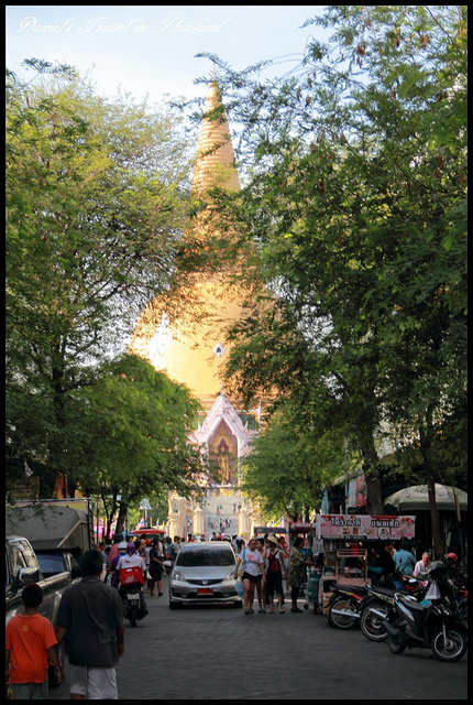 佛統府從火車站至佛寺間不過200公尺,但這條車水馬龍的街道,沿途攤販林立,光是逛這條街就花了不少的時間,也從街頭吃到街尾,佛統府著名的除了鄰近車站的寺廟外,之後還查到原來台灣人所風靡的咬錢虎的所在地龍波本廟也在佛統府,而且離火車站不算太遠,如果對咬錢虎有趣去想到龍波本廟造訪的人們,也可以選擇搭乘火車前往, |