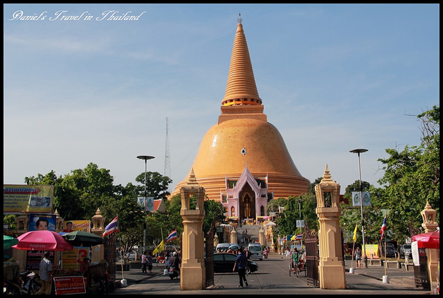 佛統府最著名佛寺Wat Phra Pathom Chedi Ratchaworawihan,不過因為逛街道逛太久,加上不確定甚麼時候火車發車,所以只拍個外觀就走了,沒有進去內部瀏覽, |