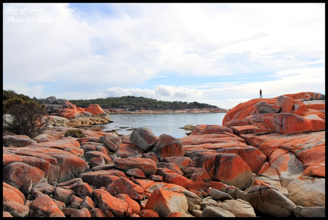 火焰灣的特色除了有非常美的海景之外,其特別以及頂部色彩火紅的石頭也是一大特色,本以為火焰灣是因為這火紅的石頭而得名,但其實只是因為早期的探險家在海岸邊看到當地土著所升起的火焰因而得名,從ST Helens沿著Binalong Bay Rd.前往就可以抵達火焰灣,但功課最好是要先做好,免得會落得跟我們一下的下場呀XD,