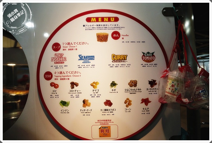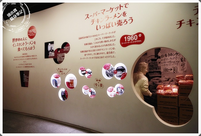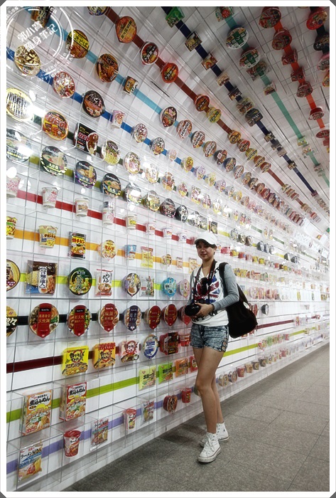 幾乎每個遊客都要合照的泡麵牆,日清泡麵從1958年開始創立到現在已經50幾個年頭了,原來泡麵才50幾個年頭,我一開始以為會更久耶。 |