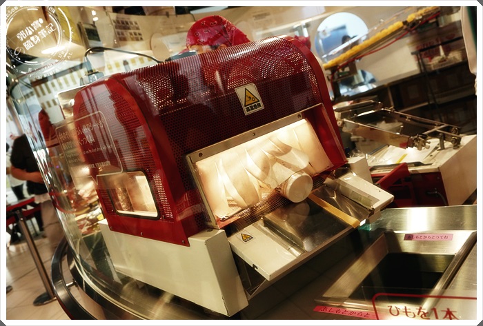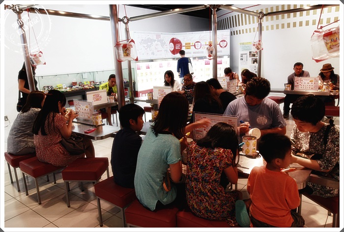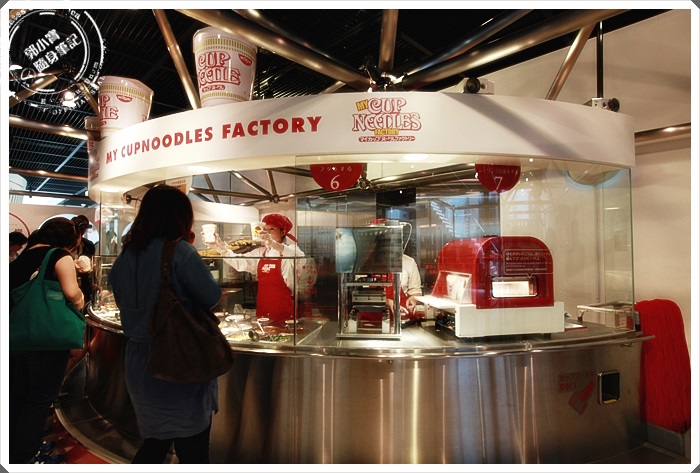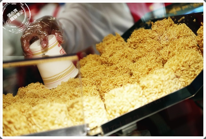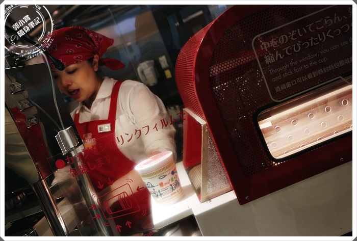 工作人員會跟客人用互動式的方法,讓你自己捲泡麵杯的麵體,麵體在封膜前工作人員就幫妳放進去了 |