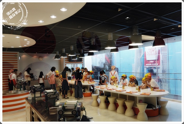 我們則是又參觀了二樓的小小孩童學習營,這邊體驗的就更專業一點了,是從麵粉開始製作的,報名的人都可以獲得專屬T桖跟頭巾,理面看起還超熱鬧的。 |