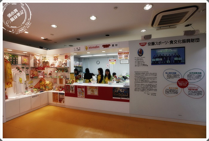 入口處的左邊有可以界翻譯耳機的地方,只要拿護照就可以借了,這邊也有販售日清系列的相關產品,大部分都是文創商品為主,應該是沒有賣泡麵啦。 |