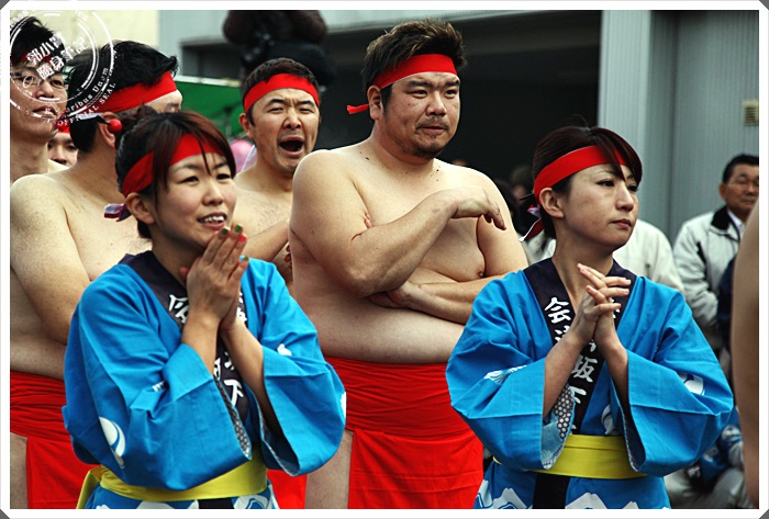 在神功跟裁判官上到土俵上準備完成的時候,拔河比賽就開始宣判規則,主要以三戰兩勝為主,但是整天看下來我個人還是滿喜歡這個祭典的,就算是拔河比賽也是以趣味為主,並不是要拼個你死我活的狀態,沒有特別嚴格的標準鳴槍開始,一切都是順其自然的就開始拉了XD |