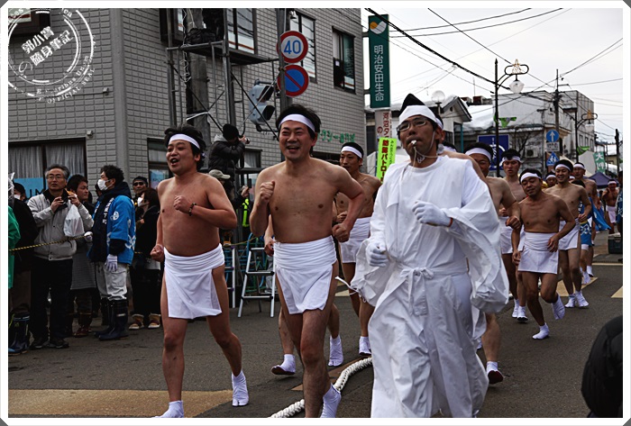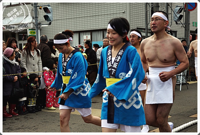 唯一問了大塚小姐兩隊代表著?? 大塚小姐回答,其實坂下初市的奇祭主要是用來讓民眾連絡感情加上祈求這一年可以順利平安跟豐收,像紅色如果拔河勝利的話就代表今年會米價會上漲,白隊如果勝利的話代表今年收成會大豐收,其實說來說去都是好的意思啦XD |