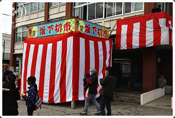 這個活動我們就簡稱它為坂下初市,看台就搭在市役所前,這看台是最後引發人潮爆發的主要戰場,第一次來參加的我還以為是個發表演說的高台而已,其實最厚的人幾乎都會往這邊靠攏。 |