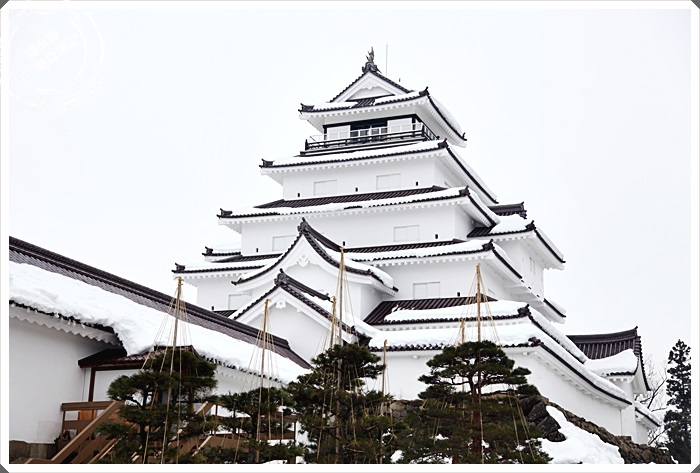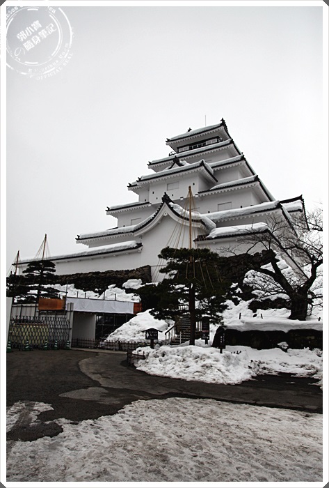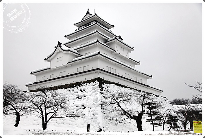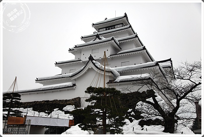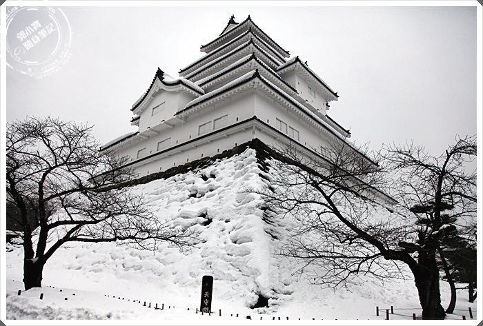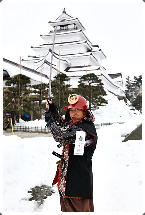 走到城下看到這令人震撼的若松城真的是太美了,這是我第一次在大雪中欣賞日本城,跟櫻花盛開的時候是完全不一樣的風情,在冰雪中的若松城有一種屹立不搖的感覺,耳邊似乎想起來400年來的戰爭殺聲,若松城的天守閣其實在幕府末期因為戰爭而遭受到非常嚴重的損傷,後來是日本政府再重新將它修復成功給大家參觀,我真的感覺到日本在保存古蹟這一塊真的相當的認真。 |