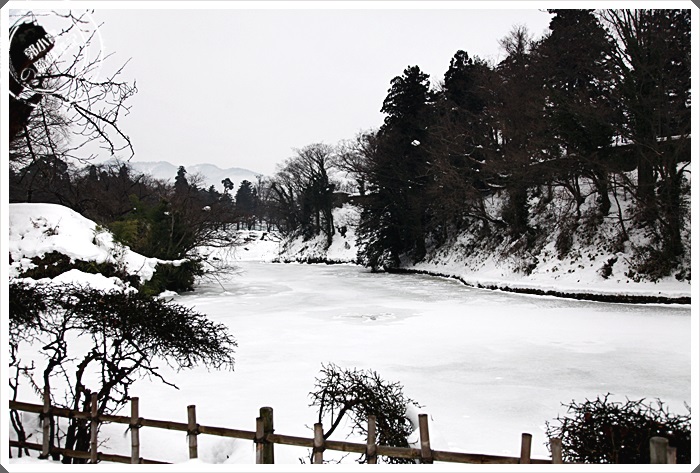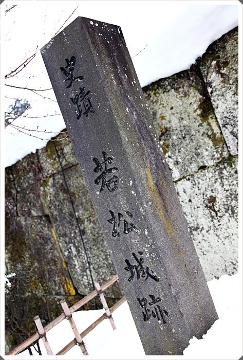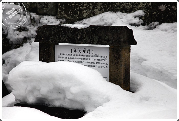 走到這邊看到一個本丸埋門,似乎這邊以前也有一個城門,也是因為遭受破壞而消失,因為下面的字都被大雪覆蓋了,所以不知道他正確想表達的意思。 |