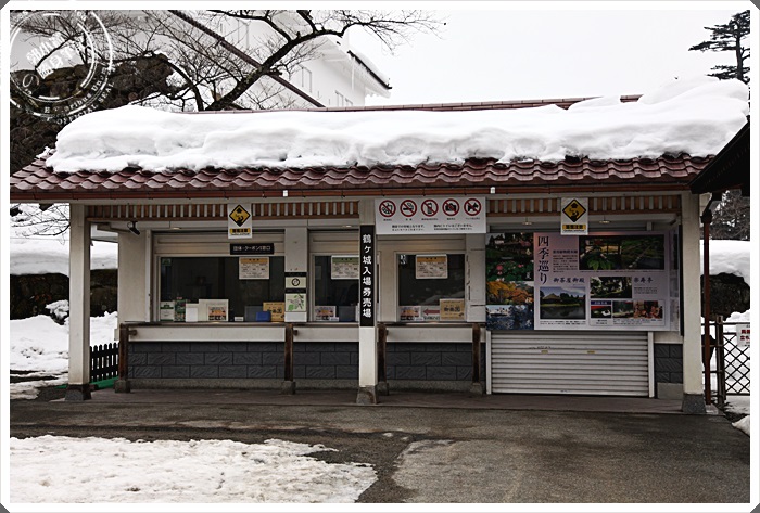 繞到了天守閣底下就會看到售票亭了,若松城的價位會因為四季的變化而作變動,像我們這時候來到這邊剛好遇到若松城的門口正在整修,所以價位又在更便宜一點,平均價位都相當的便宜。 |
