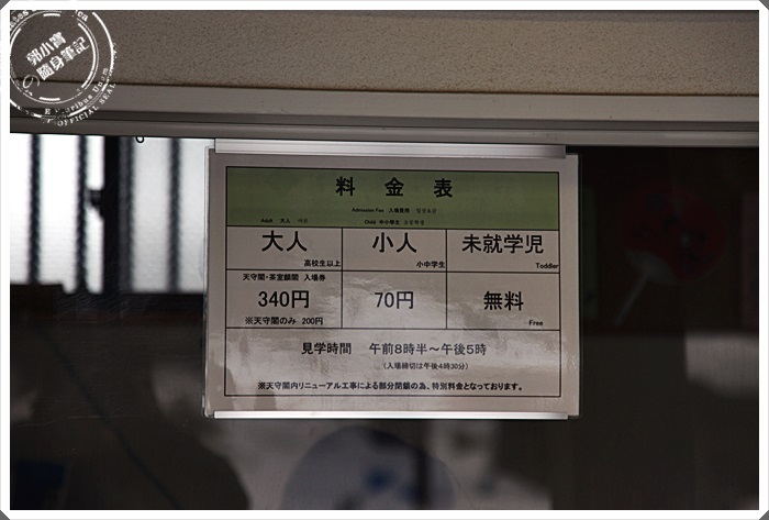 看看今天的票價是一個大人也才340円,真的是有夠便宜的,大概是我看過天守閣門票裡面算很便宜的了。 |