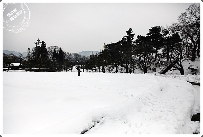 我們跑到了最多人拍若松城的角度去捕抓這美麗令人嘆息的若松城,拍了好多張才選出了一張自己也比較喜歡的,彷彿跟白雪世界融合成一片的天守閣真的是太令人喜歡了。 |