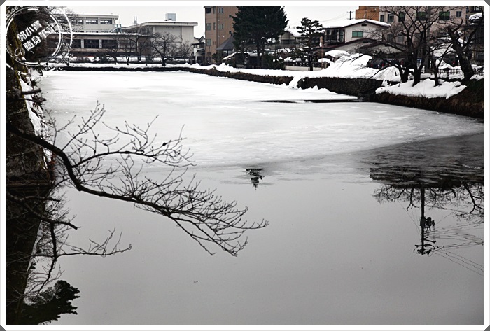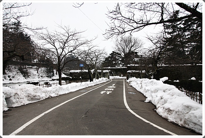 然後再往前走才是準備通往若松城的道路上,會津若松據說2015年這個年初下的雪亮連會津人都有嚇到,因為已經很多年沒有這樣的雪亮了。 |