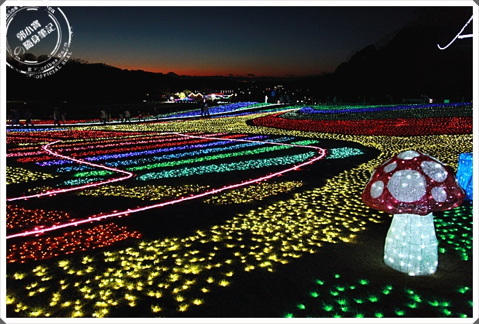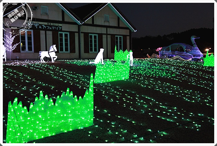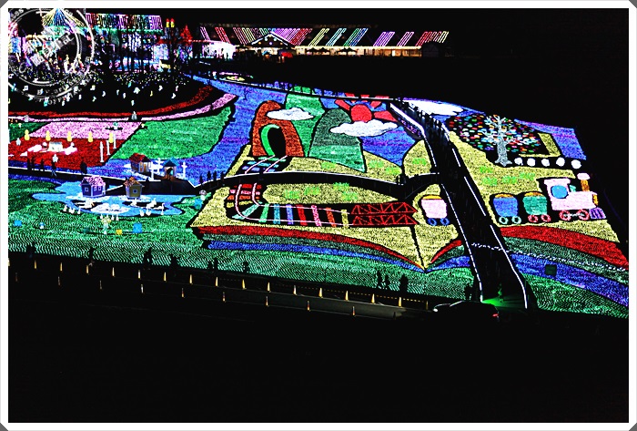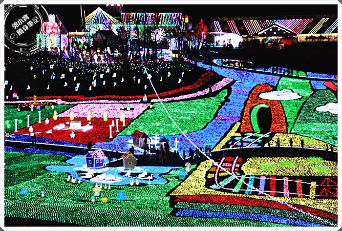 緊接而來的是第二個小燈飾區,這邊其實也沒有很大,但是一邊步行一邊看還滿過癮的,很少人會走路從大門進入,來到這邊幾乎都是日本人跟旅行團,都是直接停到上面的停車場觀賞主燈,所以前面這兩個小燈飾區都沒有甚麼人,相當方便我們拍照。 |
