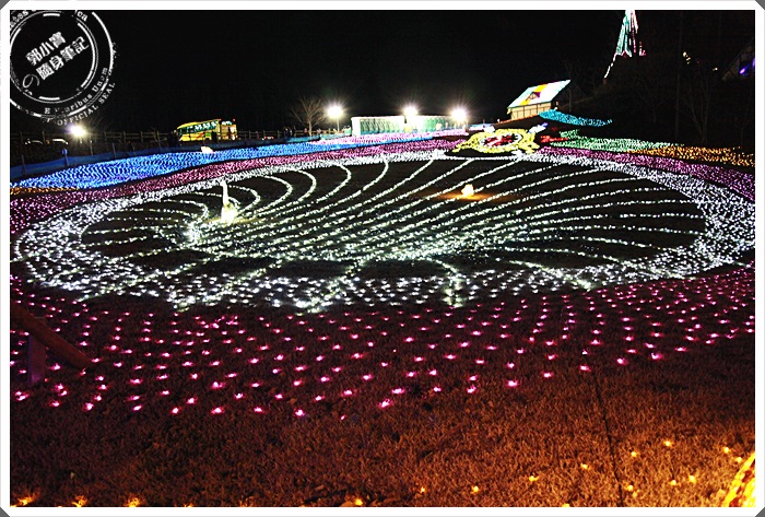 繞了一圈後我們又回到了燈飾區,後來發現很多人都往燈飾區的另一頭的山上走去,但是那一頭基本上是黯淡無光的,後來上了山頭才知道,這個燈會叫做光之彩繪,真正的燈飾主題就是要爬到那個山頭往這邊看,才能體會出甚麼叫做光之彩繪。 |