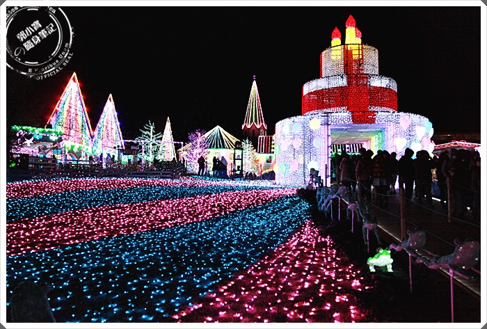 這邊其實算是本來東京德國村裡面的主建築群,但是在主要入口處布置了一個大蛋糕,加上運用七彩燈光投射在建築物上跟燈飾的加持下,每個建築都變得相當的有特色及美麗,因為七彩的關係讓這個村落感覺起來相當的繽紛,就是一整個歡樂繽紛的感覺無誤!! |