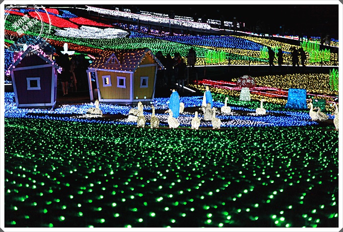 越靠近煮燈飾區越覺得她相當的壯觀,要撲滿這一整片土地需要多少燈泡阿,遠遠的看好像是另外一個世界的感覺呢! |