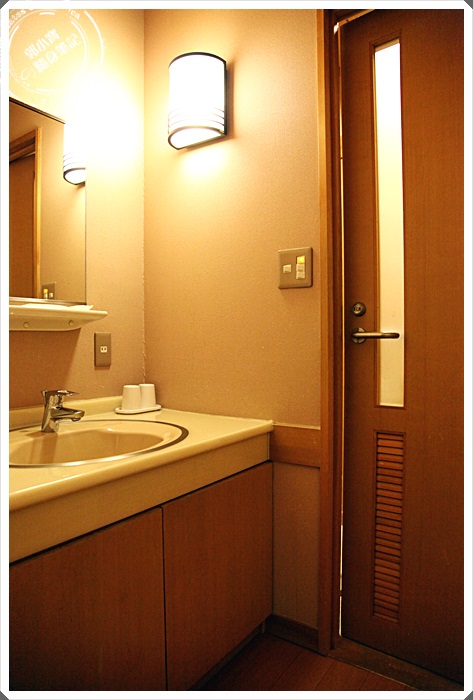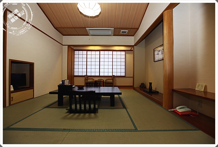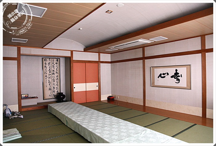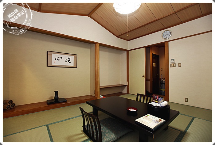 不規則形的天花板看起來房間挑高有放大的效果,除了一個大桌子以外基本上沒有其他相關的物品,最裡層有小隔間,但是這小隔間是沒有另外的拉門相隔,房間內的空調暖器相當的夠力,開不到五分鐘整個房間就暖烘烘的了。 |