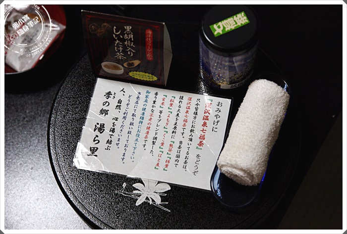 打開茶組的蓋子後裡面就放了一整組的茶具,在裡面還有另外的茶葉罐,在冬天泡完溫泉回房間後,最適合的就是泡上一壺茶,靜靜的欣賞雪景喝壺熱茶,超享受!! |