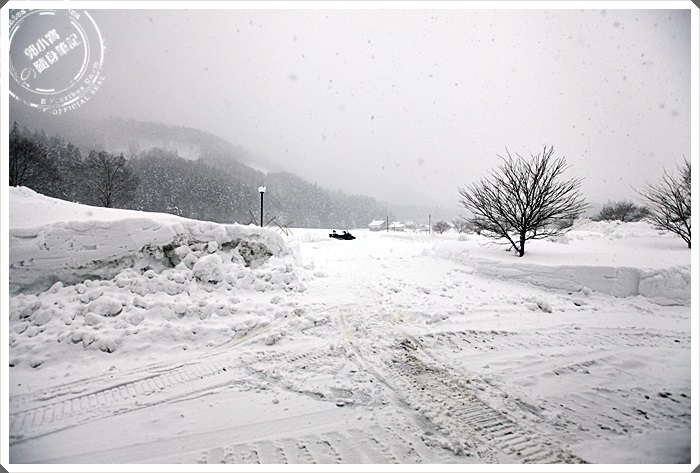 經過了長途跋涉我們一度迷失在大風雪中,連司機都差一點找不到方向跟路,沿路的雪幾乎都已經可以變成了一個小型的立部黑山小雪壁了,繞了好一下子我們終於看到幾乎快把大雪淹蓋的季之鄉湯拉里度假村了,門口周圍還有好幾台大型機具來回開挖,努力的把雪往兩邊堆疊起來,積雪的高度幾乎都有一個人以上的身高了。