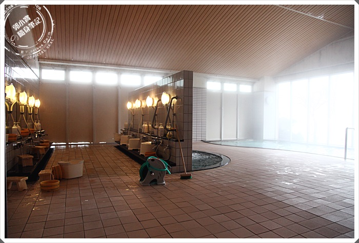 其中一間溫泉池的室內空間,除了有淋浴設備以外,還有一個可以看到窗外的溫泉池,因為蒸氣真的太多,所以並不是那麼的好拍,拍起來有一點的模糊。 |