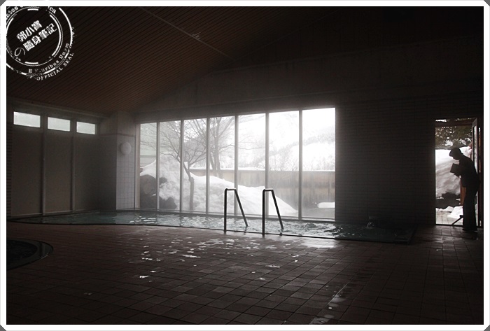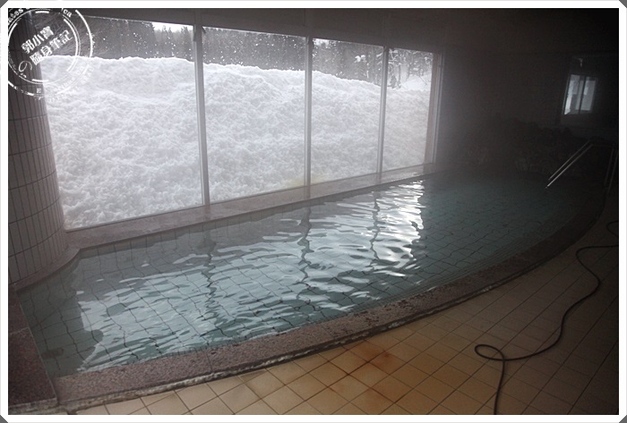 另外一個溫泉池不管室內外看起來池子都相對大了許多,風景視野也比較好,但是室內的部分其實都差不多了,因為大雪幾乎蓋住了整個落地窗XD |
