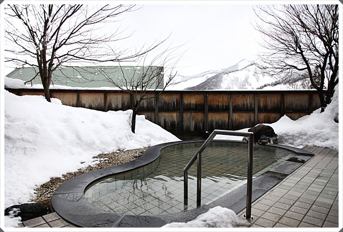 大雪中的戶外池泡起來真的格外的快樂,尤其邊下雪邊泡湯真的很舒服。 |