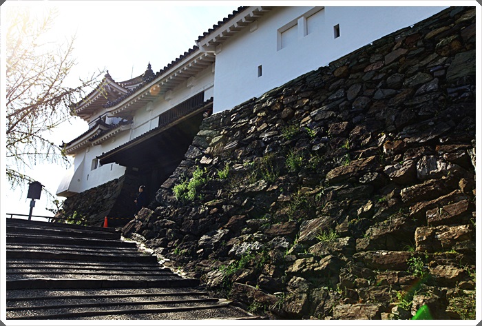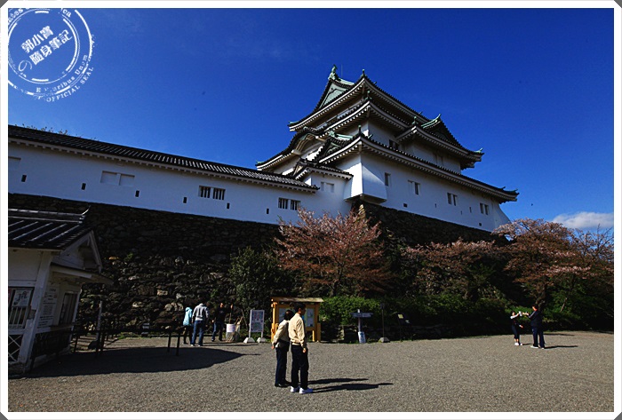 準備爬最後的石階上天守閣,一旁的櫻花樹也正盛開著,但是只有幾顆而已,頂下的櫻花林比較盛大。 |