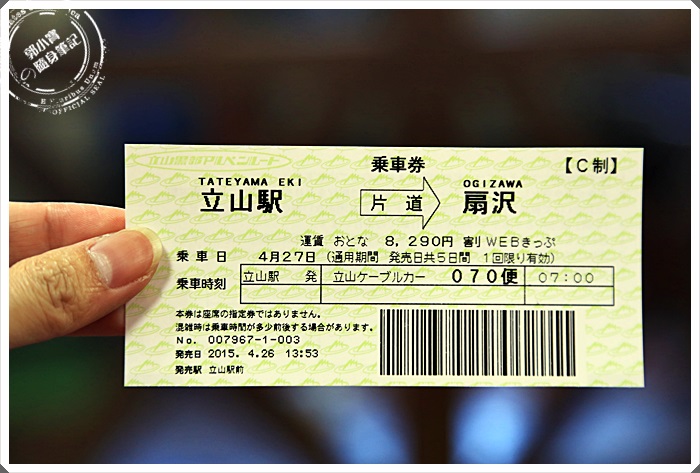 這一張車票可要好好的保存,因為在整個立山黑部都要靠他通行了,你也可以一站一站的買車票,