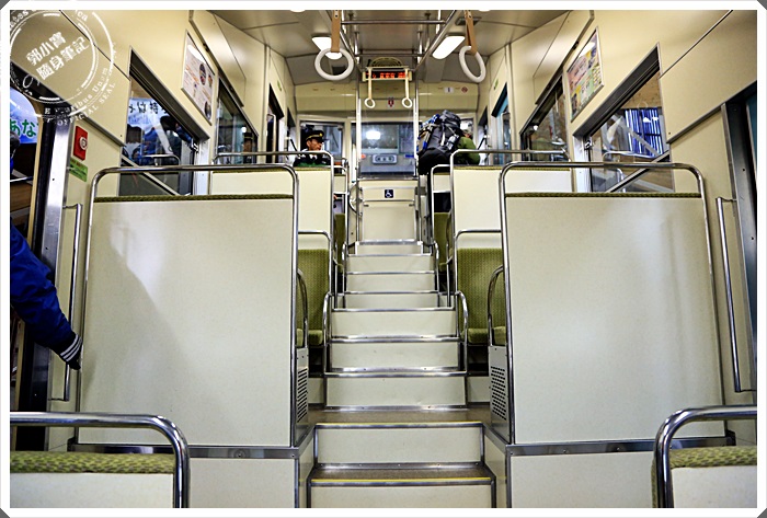 相當特別的地面電車巴士,據說是全日本唯一的地面電車巴士,這輛巴士基本上是沒有固定座位數的,