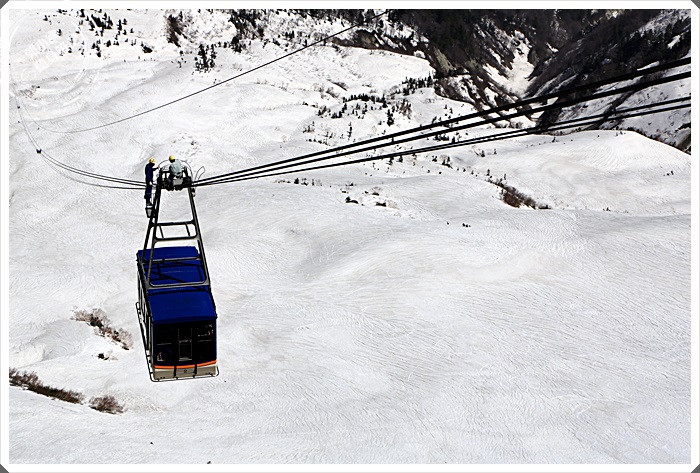 除了一般的遊客以外,第一班的車子上可以發現趁大清早就上山滑雪的人相當的多。