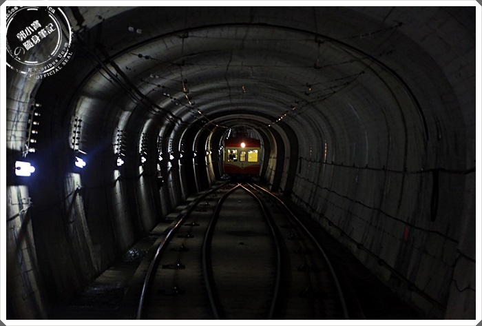 黑部平的登山電車是在斜坡的陰暗山洞里行駛,中間還會有另一部電車交錯,彷彿有種地心探險的感覺。