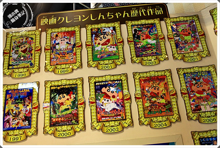 一旁的海報是蠟筆小新歷年電影劇場版的海報,直到今年2015年還是有推出新的劇場版,及使作者已經意外身亡,但是製作公司還是讓小新一直陪伴著大家。 |