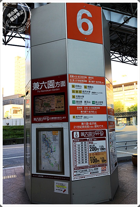 富山之旅除了立山黑部看大雪壁以外,最重要的行程就是看金澤21世紀美術館了,因為車站走到美術館有一大段滿長的距離,所以我們選擇搭公車,單趟是200日幣,為了北陸新幹線的開通,所以連金澤車站都是全新打照開幕,金澤車站也被稱為最美麗的車站,我個人覺得確實是很漂亮又帶點藝術感,要搭乘公車可以到車站旁的6號站牌等車。 |