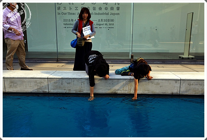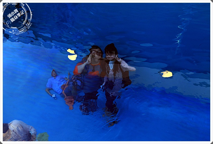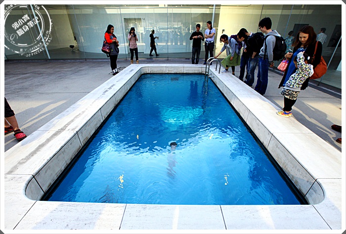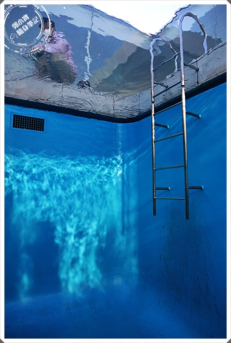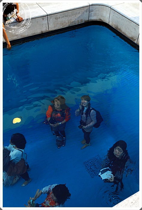 感覺就像是一個真的泳池一樣,好多人都一定要親自摸摸看才肯罷休,其實他中間就是隔了一層剝離,淺淺的一層水加上反光讓人有點水深的錯覺。 |