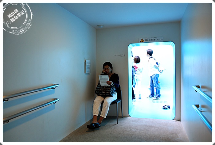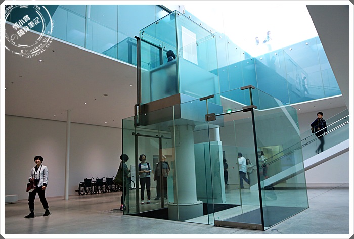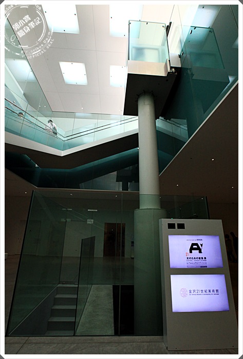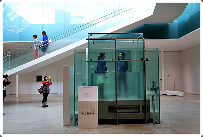 轉個頭我們跑到了另一個金澤21世紀美術館很有名的設計,就是透明無軌電梯,這個電梯真的也滿酷的。 |