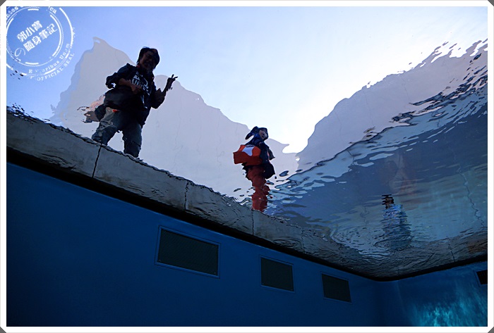可以看到泳池底下的人,這樣感覺真的好奇妙唷,要進入泳池下方的通道中間就會需要門票了,如果你光是在上面看的話目前還不需要門票的。 |