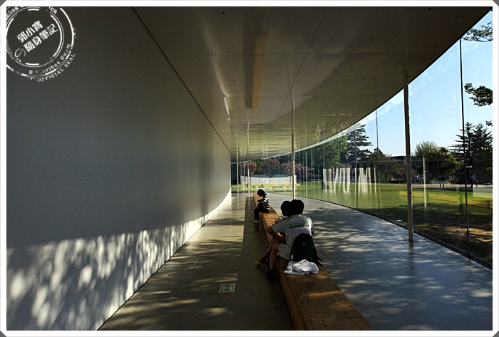 繞著金澤21世紀美術館的圓形走道看,真的非常舒服,好多人都坐在陰涼的地方聊天休息,盡情享受這光影之間的交錯。 |