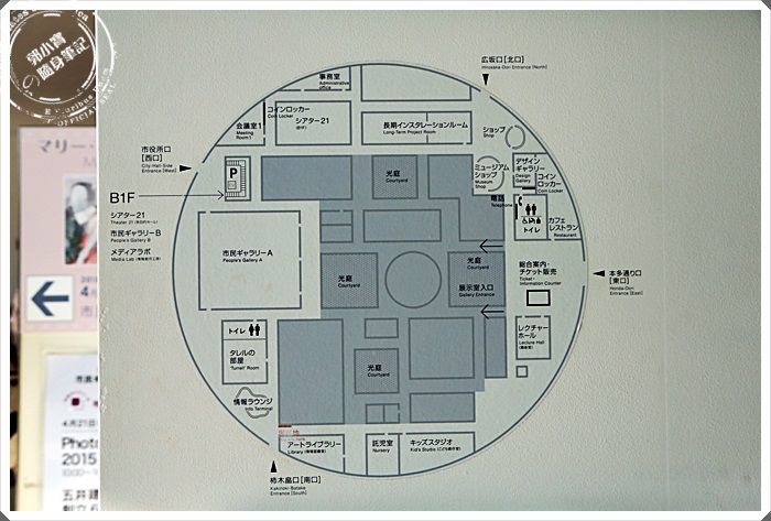 走在金澤21世紀美術館理面隨處都可以看到指引圖,說真的館內真的還滿大的,而且看起來走到哪都好像,感覺是很容易迷路的地方,但是很多條通道都有很棒的空間是不能錯過的,有時間的話一定要把全館都走完才會覺得直回票價。 |