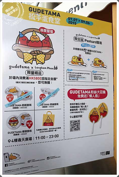 ‧您所在的位置: 郭小寶‧這就是青春 > 國外旅遊 > 日本美食景點輕旅行.桃太郎行程精選 > 『旅遊景點。香港旺角』蛋黃哥食堂|朗豪坊10周年特展期間限定讓你看的到也吃的到梳乎蛋食堂!!!