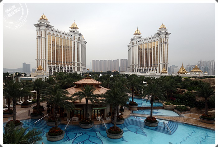 景觀台外面是銀河渡假村的第三期工程,晚上還可以看到左手邊的新豪天地的8字摩天輪,因為前方都沒有建設,所以視野相當的好,脫光光再房間跑來跑去也不怕對面有人偷窺XD