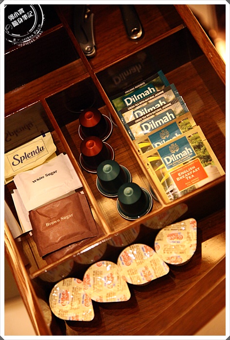 房間內使用的是膠囊咖啡機,礦泉水不夠的話隨時可以請服務人員送,還滿大方的,因為我滿會喝水的,一次要六瓶瞬間就幫我送來了。 |
