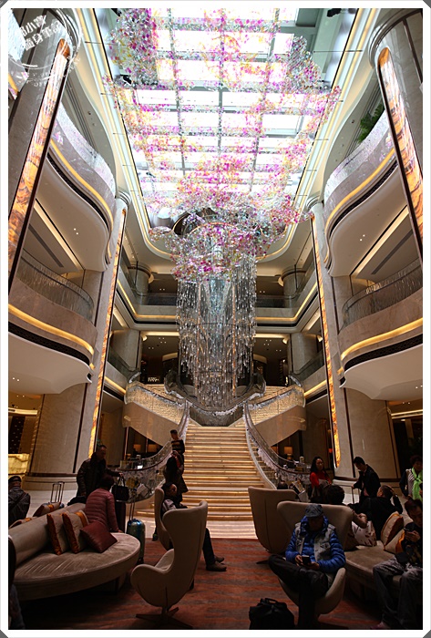 大廳中間有個金碧輝煌的迴轉梯,我超愛掛在大廳上的水晶燈,超華麗的,二樓通往萬豪中餐廳跟超有名的萬豪自助餐,萬豪自助餐現在已經訂到明年2月份了。 |