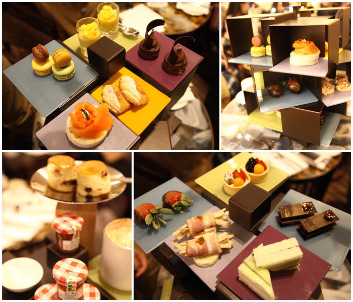大廳後方的下午茶也相當豐富,萬豪酒店的下午茶餐具頗具特色,幾何形的九宮格相當受歡迎。