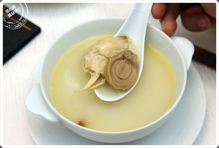 鮑魚雞湯還算挺特別的,喝下第一口感覺到非常的甘醇,跟驥園雞湯相當的相似,但是少了一種黏稠感,師傅馬上說因為她不想讓客人吃的油膩感太重,所以才把豬腳拿掉,這樣喝起來其實非常好喝,雞湯濃郁味依然美味,湯頭口感喝起來也比較溫潤,頗讓我喜歡的,雞肉去出餐前再加的,這樣雞肉才不會過於乾柴,加上一顆小鮑魚增加口感跟鮮度,著實不錯。 |