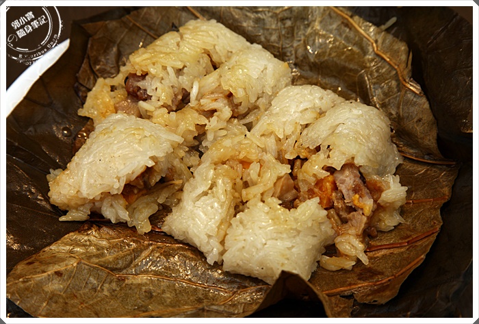 友人強力推薦的,說他上一次來吃過之後念念不忘,糯米雞頗具重量,建議人多再點,不然很容易就把你的肚子撐破了,糯米雞米粒煮得相當的黏帶Q勁,入口那獨特的糯米香氣馬上就衝了出來,裡面的肥肉油脂相當豐厚透來出來,帶點甜度的醬汁融合整個糯米雞真的滿美味的,唯一可惜的是就是內餡的油脂跟醬味有點蓋住了荷葉淡淡的香氣。